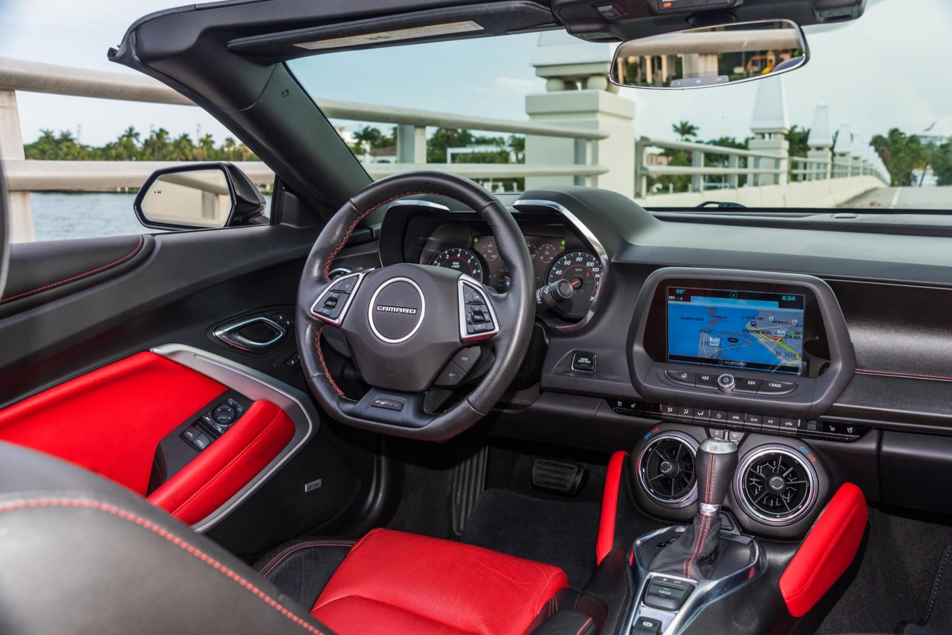 black chevy camaro ss red interior center console