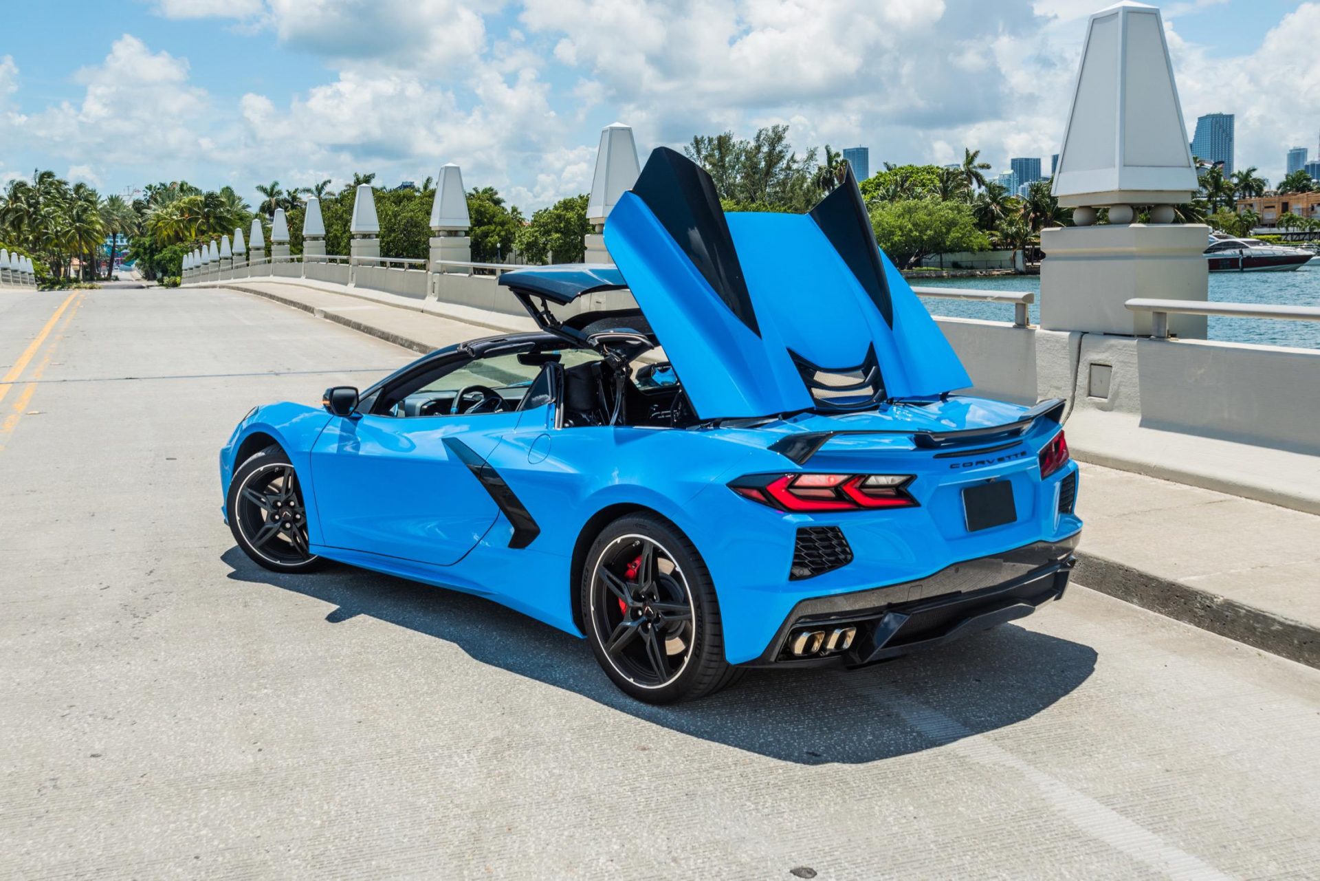 blue corvette c8 back view