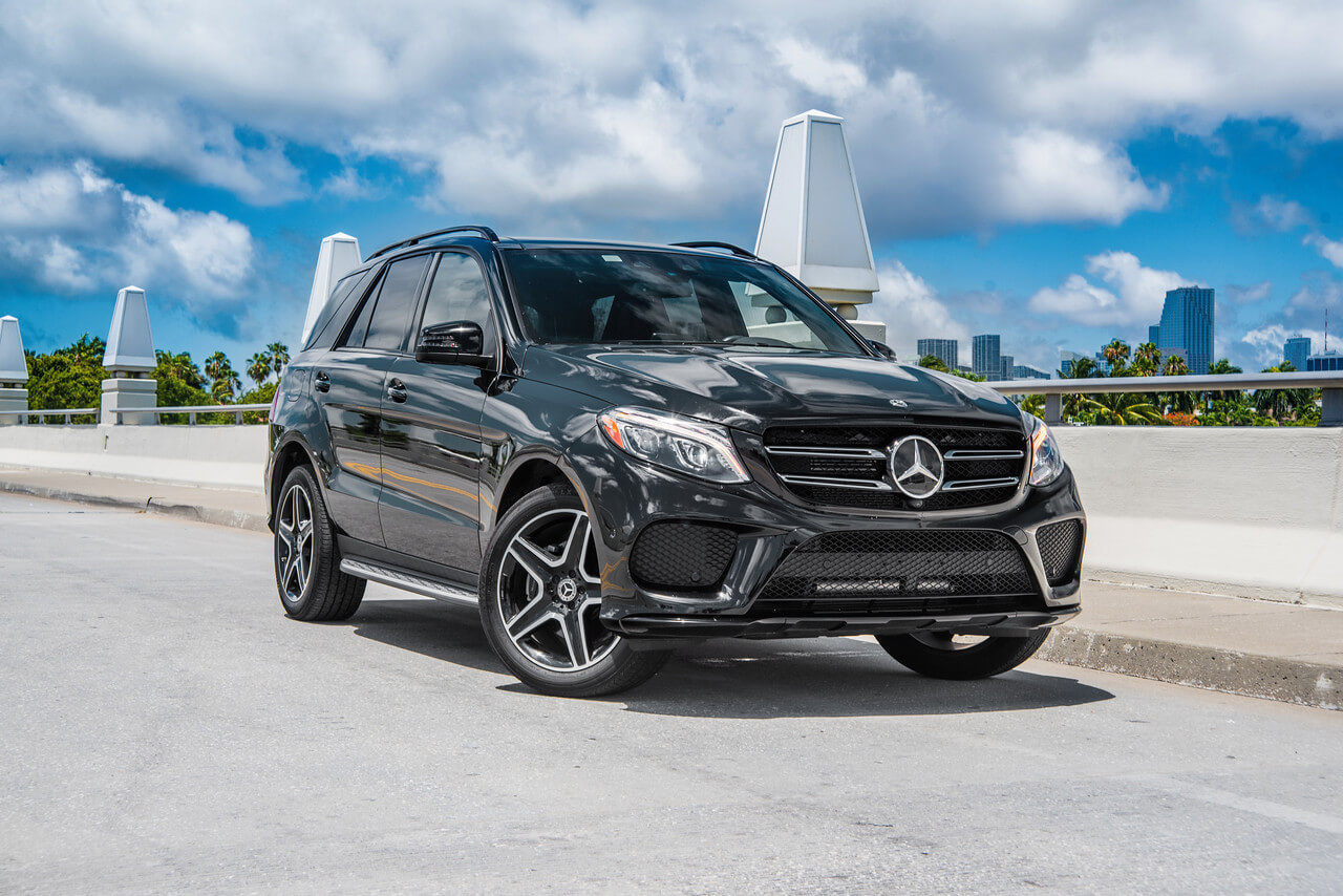 image of front view of black mercedes benz gle rental in Miami by Rent & Paradise Exotic & Luxury Car Rental