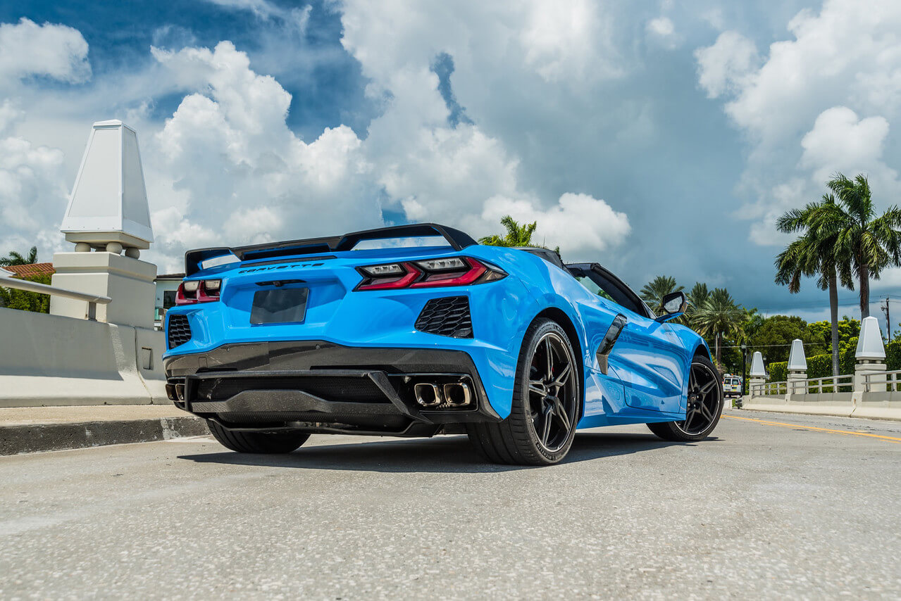 blue corvette c8 back view