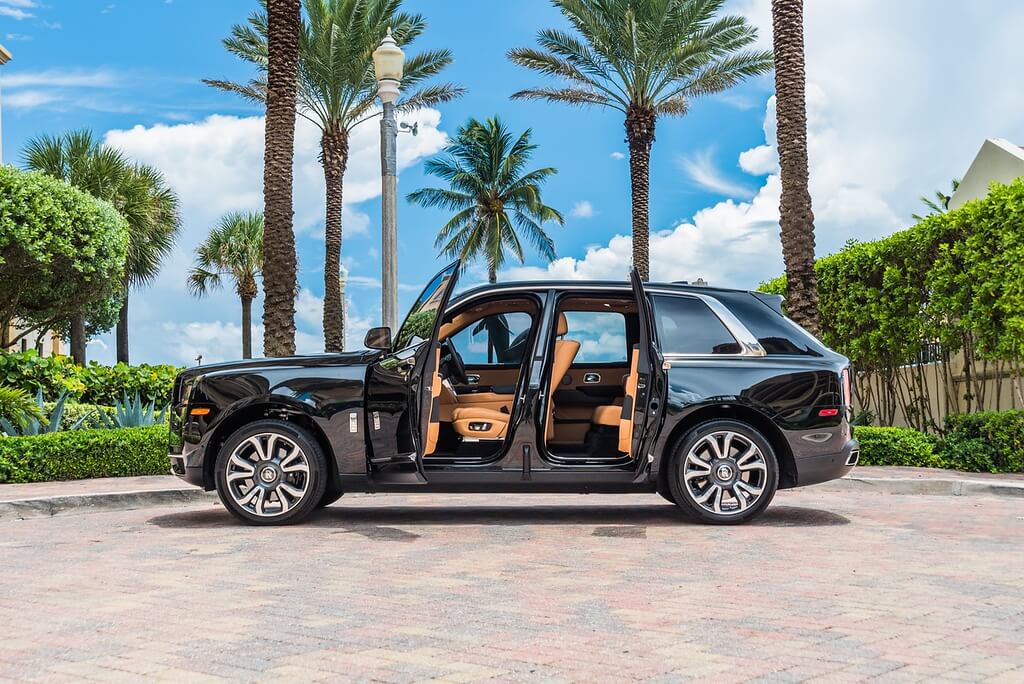 black rolls royce cullinan side view doors open