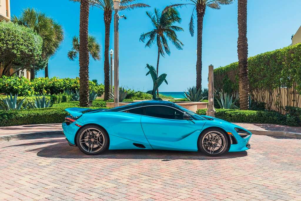 blue mclaren 720s right side view