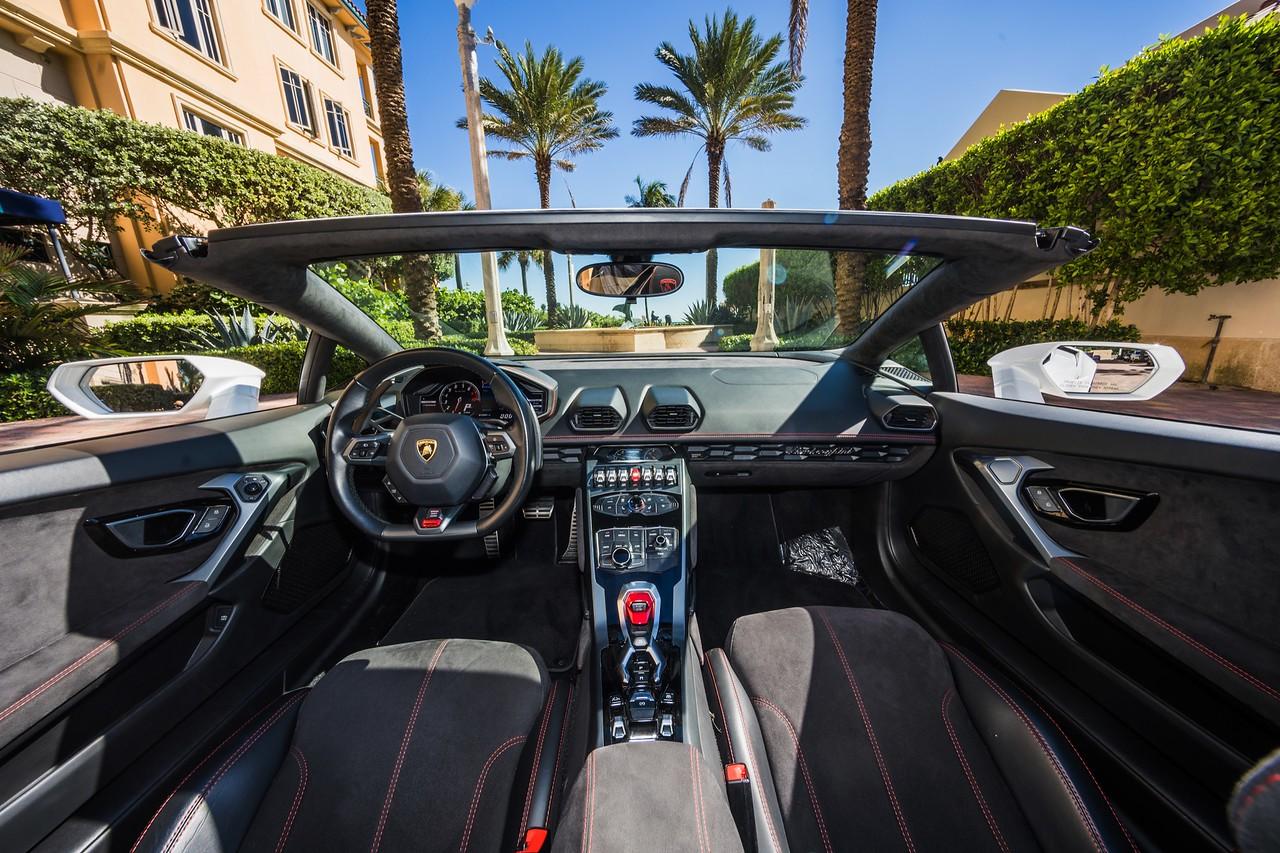 white lamborghini huracán evo front interior