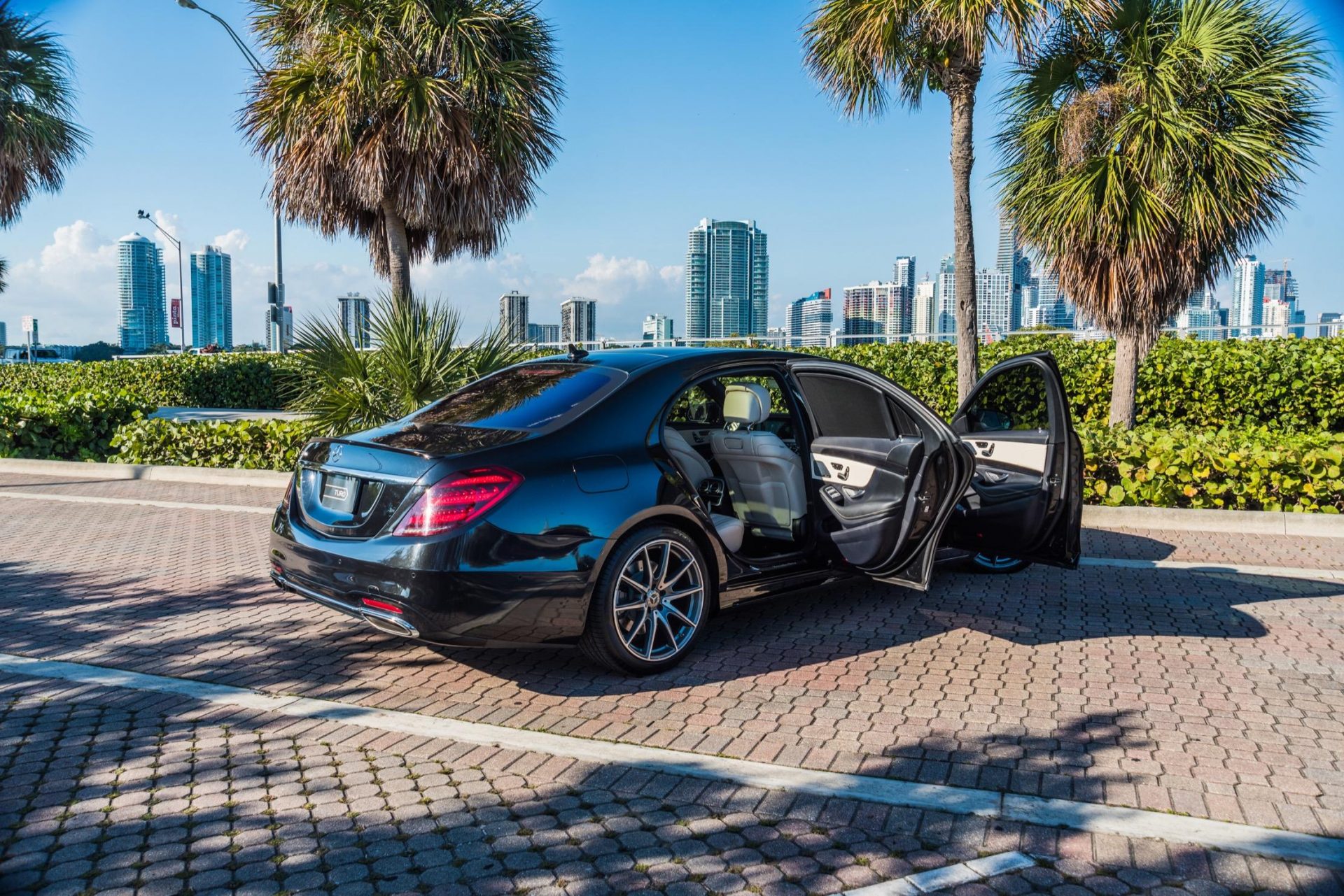 black mercedes benz s550 sedan side view doors open
