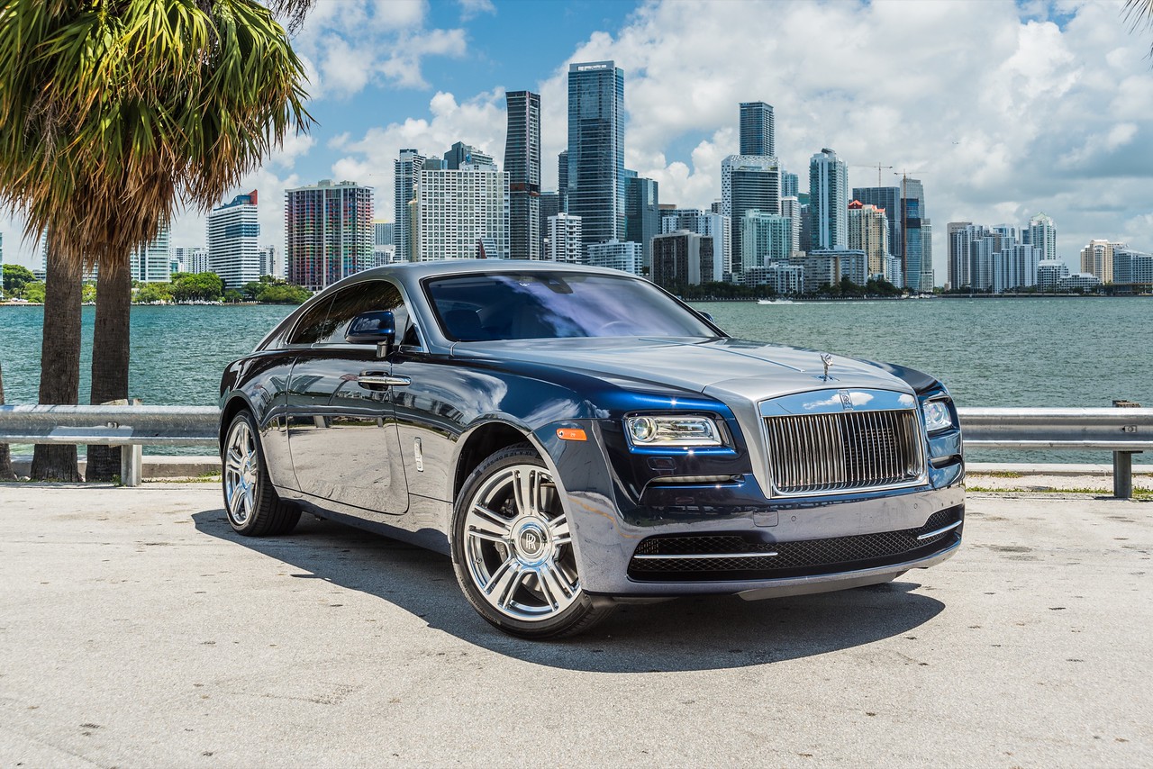 blue rolls royce dawn front view